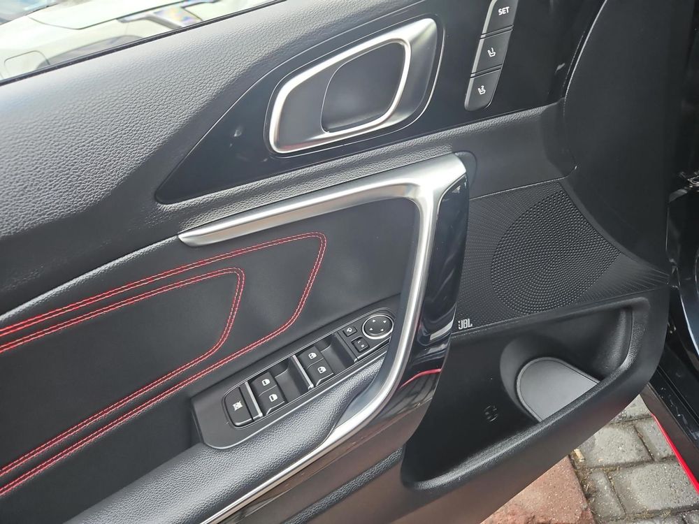 – czerwone przeszycia foteli, boczków drzwi i kierownicy