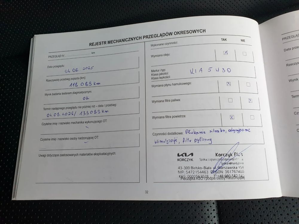 Przez cały okres eksploatacji serwisowany w ASO Kia.